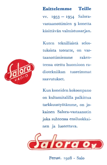 mallia pidemmälle. Sen sijaan matkaradiota SALORA 450 M seurasi kaksi