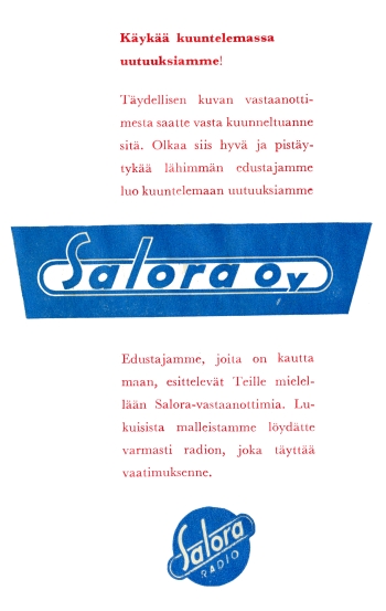 mallin mittaiseksi. Toinen uutuus oli mallien SALORA 501 V ja SALORA