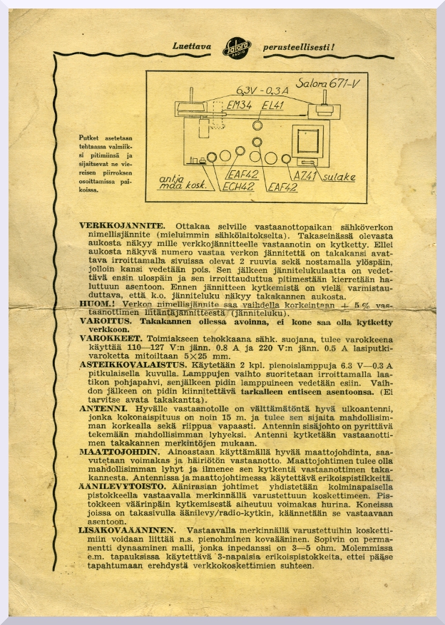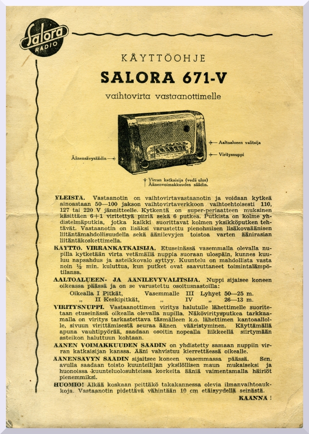 SALORA 671-V KÄYTTÖOHJE