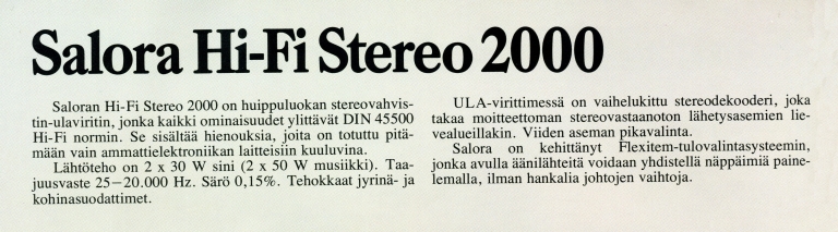 STEREO 3001 ja LS 2000. Sarja on vamistusmäärillä mitattuna SALORAN valmistamista