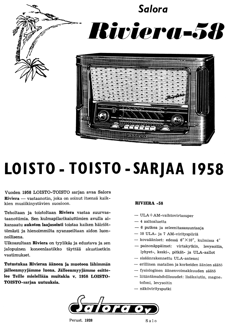 RIVIERA 58 jatkoi Saloran menestyneintä pöytäradiosarjaa.